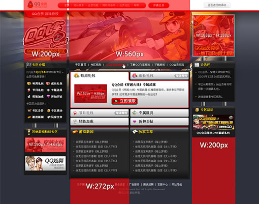 模板化專區,這個由來已久的概念先行於會員的游戲專區。在此不得不提一下之前的游戲專區。會員游戲專區主要是為QQ會員身份的用戶提供一些“優先體驗”、“游戲試玩”、“禮包發放”等功能,根據不同的游戲有不同的特權體驗。之前都是不同的游戲專區設計不同的交互和視覺,加上重構的周期大概是4-5個工作日,再加上程序和測試,視覺設計師接到需求到產品上線,至少是一周多的時間。