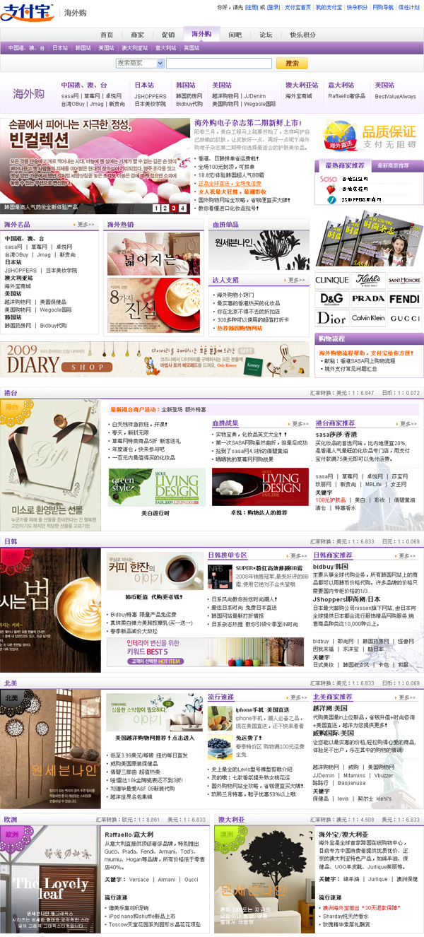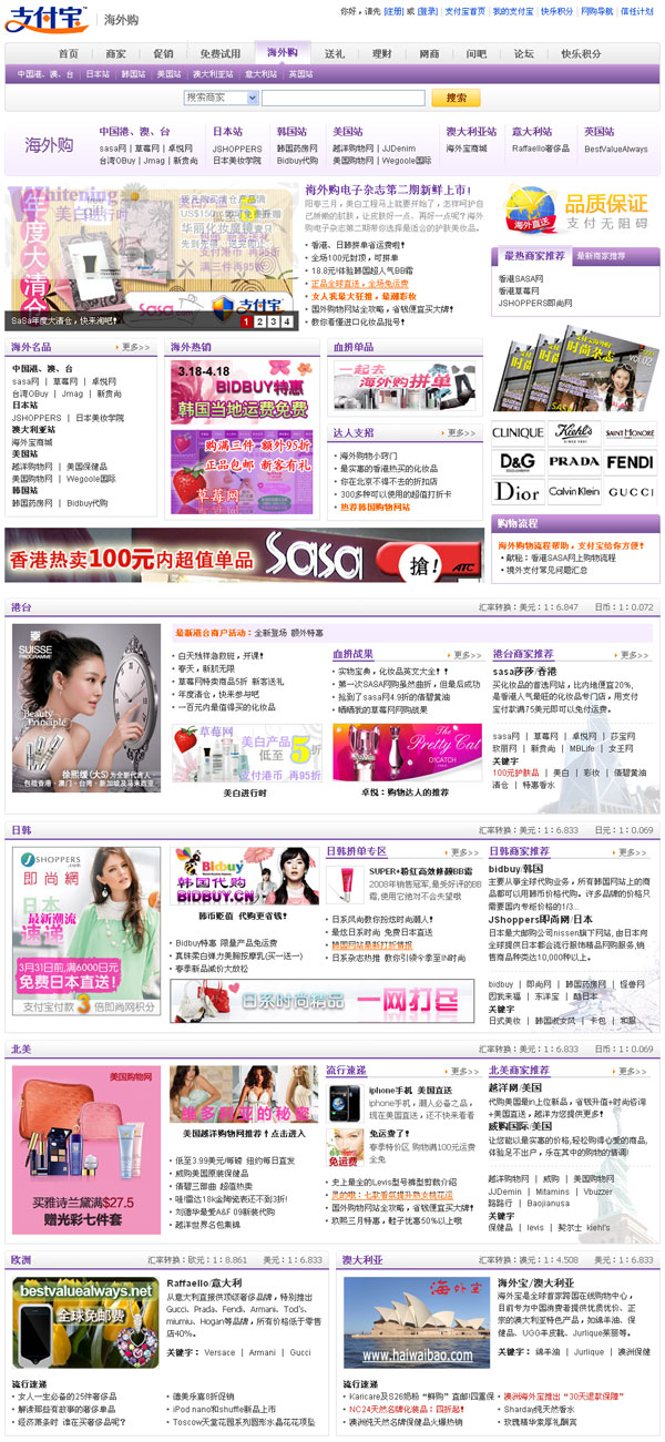 這是哇!支付寶海外購頻道最新上線的首頁,導航、按鈕及其他設計元素都已經過統一規范,我的任務是再將它休整的整齊一些。