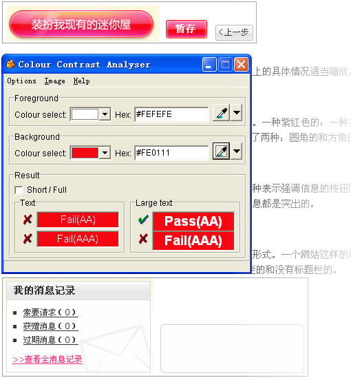這套規范中的,按鈕的第一級、第二級和文字中用於突出的第三種,紅底白字和白底紅字都不符合W3C的對比度規范。原本需要突出和強調的文字反而可能識別不易。