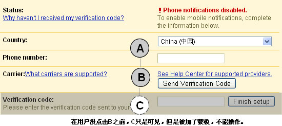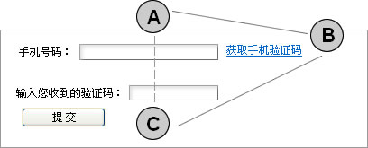 我設計的並不是特別好,這裡的C應該被近一步弱化,只有當手機短信延遲相當厲害而影響用戶繼續注冊,才讓用戶采用比較高成本和陌生的語音獲取驗證碼。