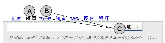 這是最基礎的流程,它永遠符合單線流程,比如百度搜索,輸入關鍵字------->百度一下
