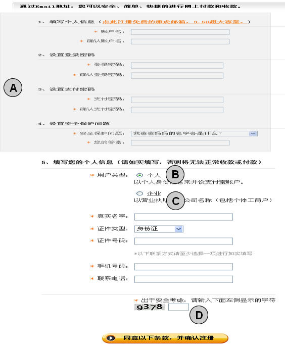使用Email注冊支付寶頁面