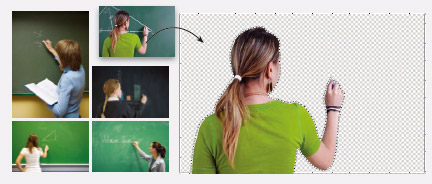 1、選擇一張照片,單獨將人物取出,去掉黑板的背景。