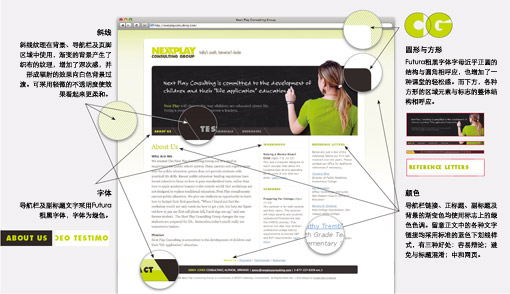 延續:我們已經將頁面的主要元素及框架弄好,是時候增加細節了。我們要借用一下標志來幫助考慮細節的問題。因為標志比網頁具有更持久的特性,我們要利用到標志的字體、顏色及其細節來設計網頁的其余部分。