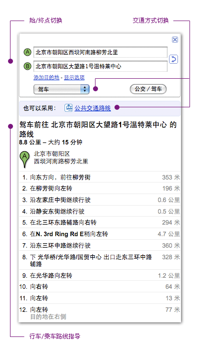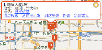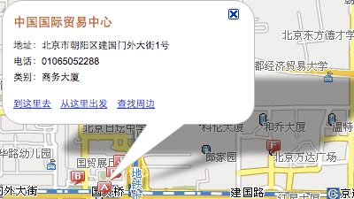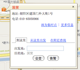 百度: 地址,電話,到這裡去,從這裡出發,周邊搜索