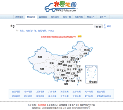 貌似以搜索見長的網站,初始界面焦點是北京市地圖;而以地圖為主產品的網站,焦點則是搜索框.或許專門的地圖站點都有一個”首頁”情節.