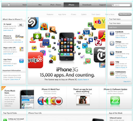 任何網站設計(或者說任何一個層設計)都是從最簡單的網格開始的,網格是任何層和內容的基礎。Apple 在每一個頁面,統一使用整齊的網格布局設計,給用戶一個愉快的體驗。