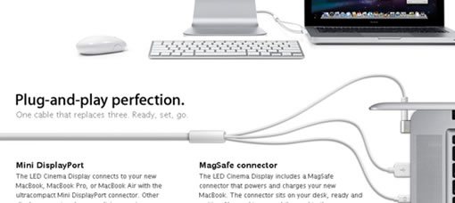 Gallery 導航: 除了基於導航設計的內容組織外,圖片的組織也同樣是極其重要的。Apple.com實現了一個非常簡單的圖片展示功能,除了使用了縮略圖菜單外,還使用了 lightbox 的表現效果,簡單簡潔的設計,卻讓用戶的操作表現的流暢完美。