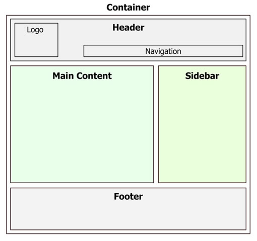 這些是web頁面的主要元素。有很多不同的方法去組織它們,但是這種布局也許是最常用的。