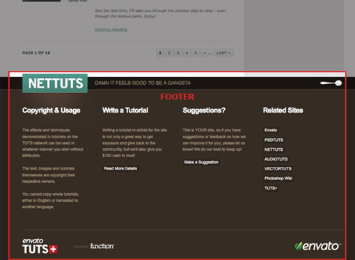 web頁面的尾部總會有一個頁腳,讓您的訪客知道他已經到達了你web頁面的結束部分。和header一樣,footer也不是一個特殊的元素 。在你的頁腳裡包含版權,法律聲明以及主要的聯系方式。包含一些重要的鏈接是個好主意,比如home page, contact page, 等. 有些網站用這個區域提供一些相關材料或者其他重要信息。