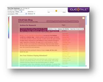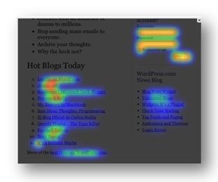 收集頁面上點擊的位置,顏色越熱,表示點擊量越高