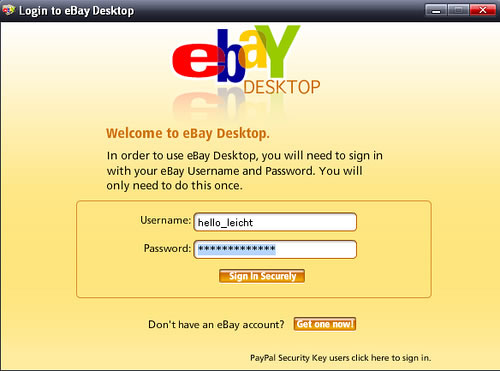 剛才要說的是這幾天親身體驗了一下ebay的AIR感覺挺不錯的,無論從界面,交互,功能上都感覺挺好的。關於topic中的“劍走偏鋒”是因為我認為在現在看來AIR在很多人眼中還是“異類”,大部分的人還是沒有接觸過的,如果你現在對身邊的朋友說“嘿,別在網頁上網買東西了,下個ebay家的AIR用用”,八成那個哥哥會滿頭問號“AIR是什麼東東,空氣還能下載麼”,當然這只是調侃,但是AIR並沒有大面積的普及應用,確實會讓開發出來的項目深陷窘境,所以ebay敢走這步棋利用RIA中的AIR開發“半桌面級的B2B業務”也算得上是劍走偏鋒了,我是說這是一步好棋,希望我們的國內B2B老大也可以快加快步伐,利用RIA利劍也來切一塊蛋糕吃吃。ok,我們一起來看看ebay 的“ebay desktop”吧。