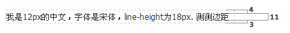 line-height: 150%; /* 12 x 150% = 18px */中文字體是宋體,line-height的計算值是18px.