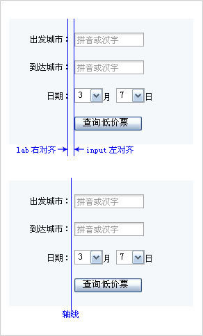 所有的lab標簽與input輸入框居中軸線對齊,一個表單中,有且只有一條中軸線——這是視覺引導的關鍵。讓用戶需要查看的信息與填寫的內容整齊劃一地羅列下來。視覺引導的形成很好的幫助了用戶在填寫過程中的順暢感。