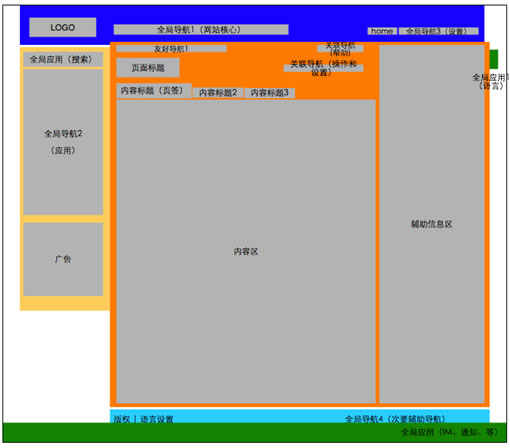 4、如今,由於“系統核心導航區”(如上圖,藍色部分)、“應用導航區”(如上圖,黃色部分)是常態存在的內容,占據了界面很大比例的位置,再加上內容顯示區(如上圖,橙色部分)本身還需要一些“關聯導航”“友好導航”已經“標題”的內容,導致每個頁面真正展示“內容”的區域很少很少。