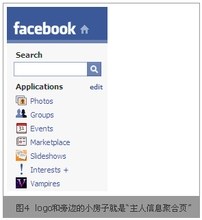 facebook的構架和“個人+社區平台”有個顯著區別:主人信息是打散到社區平台的各個欄目中,因為這個區別,我在這裡姑且給這種構架起個名字—“一體式”。
