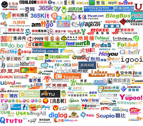 這張圖裡含有很多著名的Web2.0網站,只要你細心尋找就能找到,基本上都不是位於中國的。例如Google,Yahoo!,Feedburner,Skype,Zoho,Youtube,Technorati等等,你能找到多少個呢?