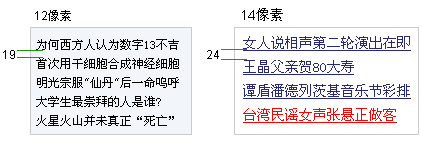 而遇到列表或大段文字,還需要注意行距問題。例如12號宋體時,我們一般使用18-20像素的行距。14號宋體通常使用22-24像素的行距。