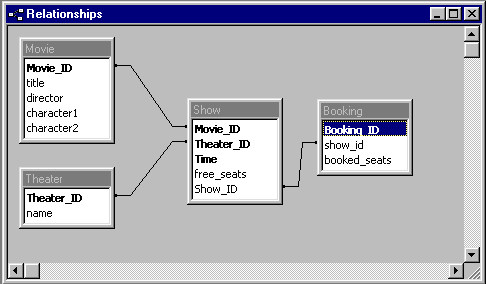 .Movie 和Theater表是顯然需要的。Show表用於追蹤現在還有多少空位可以出售。