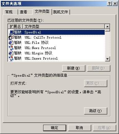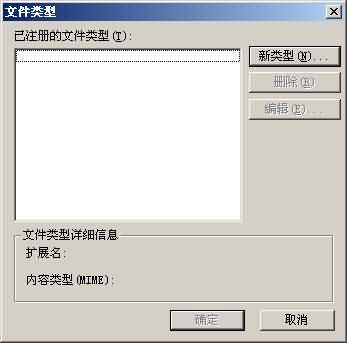 一開始畫面將會顯示在第一頁的設定部分,也就是圖1.6中的“查看”那一頁,我們新增的MIME Type的部分是位於文件類型的設定頁中,因此我們必須以鼠標左鍵點擊文件類型的Tag以切換到該設定頁。此時以鼠標左鍵點擊圖1.6中的新建類型按鈕,則會出現圖1.7所示畫面。