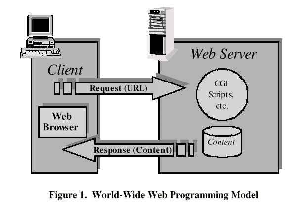 WAP(無線通訊協議)是 在 數 字移動電話、因特網或其他個人數字助理機、計算機應用之間進行通訊的開放全球標准,就像HTTP協議一樣是一種標准,規定了WEB 服務器與客戶浏覽器交互的方式、規范。在進一步學習前,讓我們了解一下WEB服務器的工作方式、原理。Figure 1(下圖)表明了客戶向URL所指定的WEB服務器發出了請求, WEB服務器根據請求的程序返回相應的內容至客戶端,二者就是按HTTP協議進行交互的。客戶端發出一個以HTTP開頭的URL請求時,WEB服務器端的程序可能是CGI程序、或靜態網頁,或SERVLET程序,也可能是其他服務器端程序,但它們均以HTML格式將相應的內容返回給客戶,這樣客戶就可在浏覽器上的看到返回的內容。