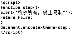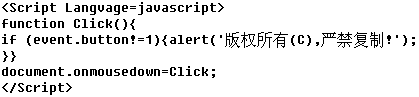 這樣在浏覽網頁時除單擊鼠標左鍵外,其他任何形式的鼠標點擊或組合點擊,都將出現“版權所有(C),嚴禁復制!”的提示框。