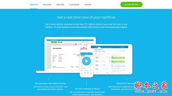 Xero 是一款在線的賬戶管理軟件,但是這個網站真的是將設計用心做好了。信息全面,組織周密,設計感十足!