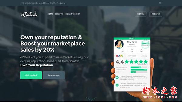 如果你是電商從業者,那麼你應該很清楚聲譽的重要性,而eRated所提供的服務就是幫你跟蹤你的聲譽變化,並幫你改善它。網站使用了許多大膽的字體設計和排版設計,彩色的圖標和獨樹一幟的平面插畫,整個網站設計感十足,還彌漫著“信任我”的氛圍。