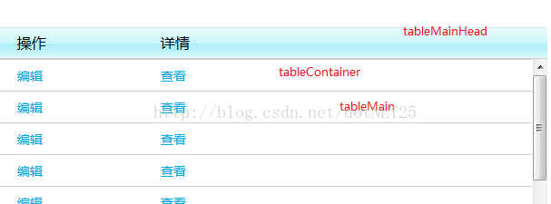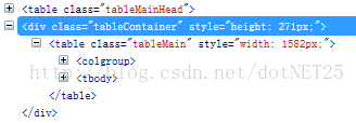 設置tableContainer(樣式裡寫)、tableMain(腳本控制)的寬度等於tableMainHead的寬度