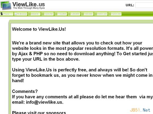 Viewlike 是一款新推出的工具,幫助你檢查浏覽器在不同分辨率下得呈現情況。