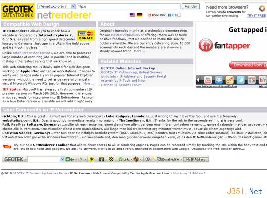 Netrenderer 也是用於檢查你的網站在IE浏覽器中的呈現情況,包括各個常用版本的檢測。