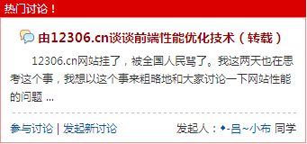 2、用戶樣式表:即使用浏覽器的人定義的樣式表。也許你不能理解,但是事實是你可以做到,具體設置方法,我以firefox為例,步驟如下:(1)菜單欄 “幫助”-->疑難排解信息-->應用基礎-->打開所在文件夾-->chrome;(2)創建一個名為 userContent.css 的 CSS 文件,編輯加入所需要的樣式,保存。注意名字必須叫 userContent.css,不能更改。否則無效;(3)重啟firefox。我以w3cfuns首頁“熱門討論”為例,對其樣式進行了設置,呈現的 結果如下: