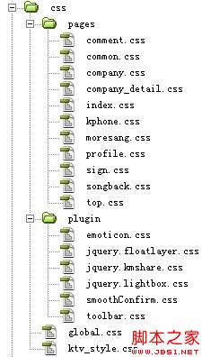 2.網站通用css(ktv_style.css):該樣式表遵循樣式組合原則,什麼樣式可以放進這個樣式表?就是整個網站通用的模塊,比如網站通用文字和鏈接文字的顏色、頂級導航、邊框線、通用標題、網站底部、評論功能模塊等等,該樣式表牽一發動全身,改一個樣式,所有的頁面都隨之改動,所以,在改這個樣式的時候要慎重。