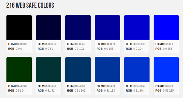 網頁安全色是當紅色(Red)、綠色(Green)、藍色(Blue)顏色數字信號值(DAC Count)為0、51、102、153、204、255時構成的顏色組合,它一共有 6 * 6 * 6 = 216 種顏色(其中彩色為210種,非彩色為6種)。