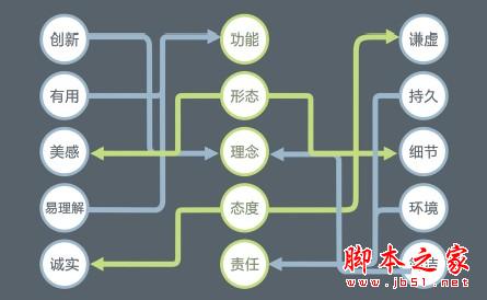 Dieter Rams,一個影響了幾代設計師的設計巨匠,將優良的設計提煉為最精髓的語言。我們將這十個原則進行分解,將相關面向的合並,可以得出如圖1-1的五個面向:即功能、形態、理念、態度和責任。
