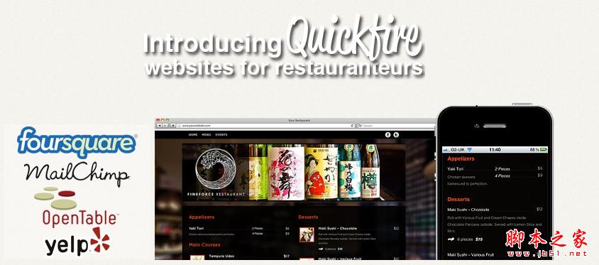 還是前面提到的那句老話,只要有需求,就會有解決需求的辦法。目前就有一家名為QuickFire的網站成功利用響應式網頁設計,專門針對各大餐館推出了這樣的服務——建立網站並對餐館的最新動態做定期更新,更重要的是網站可以兼容任何移動設備,不論屏幕大小、分辨率高低,都能給用戶帶來最佳的體驗。