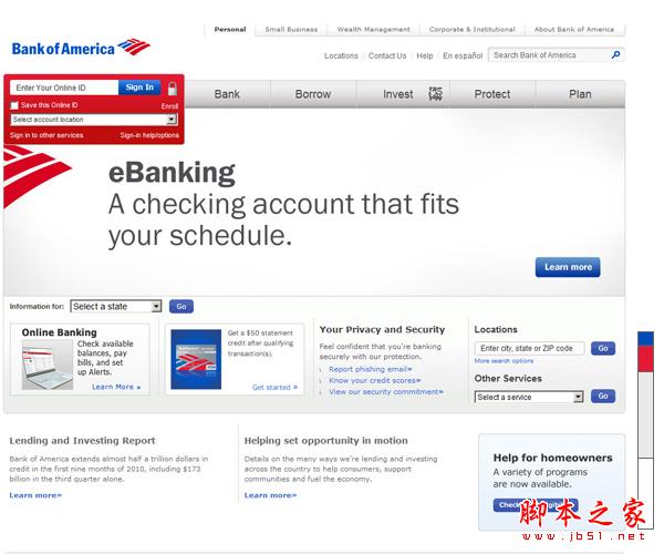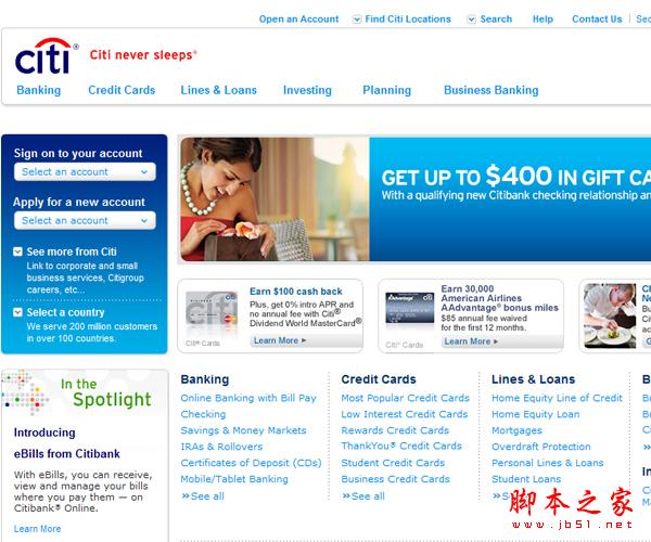當然我們也要注意到,當一個顏色運用的越多,在頁面上的影響力就越弱。例如花旗銀行的網站,本來鮮明的藍色非常跳躍,但是當其大量運用時,在頁面上的鮮明程度就不如深藍色,更不如logo邊的紅色了,但是這樣的鮮明的搭配之所以也很簡潔漂亮,除了因有大量白色作底,另一起重要作用的是鮮明的區塊設計。