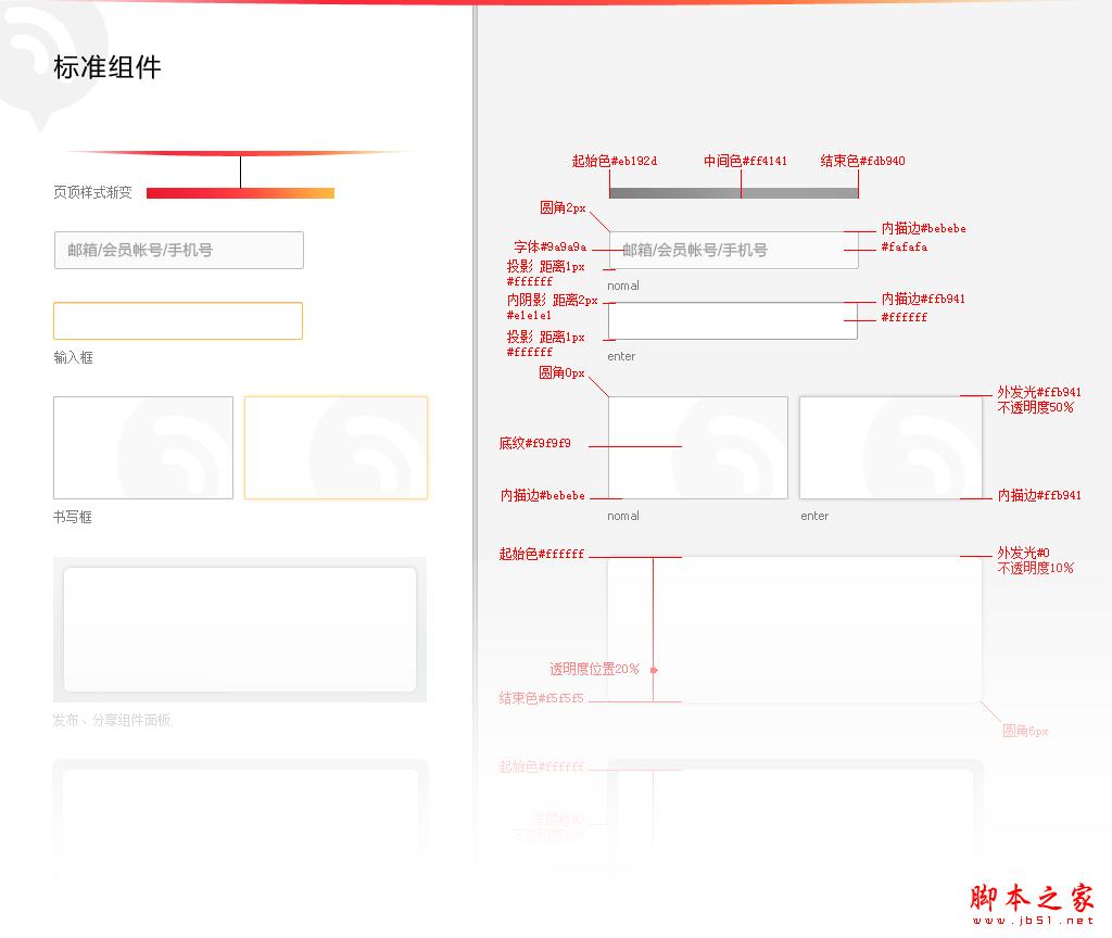 風格詞:weibo;年輕;平台; 標准色:紅、橙