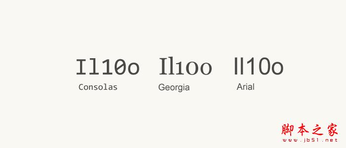 還是這個例子,在Arial字體中,i,l 的辨識度很低,而且當有連續的il等較窄文字出現時,文字難以選中,此外Georgia中,字母o,與數字0 只在大小上略有區別,基本上分不清,很難做到一目了然。