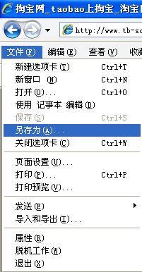 首先,我們進入他的網站。因為我們要做一個和他這個網站一模一樣的網站,所以首先我們將他的頁面保存在我們自己的電腦上。步驟是:點擊IE浏覽器上的“文件”、“另存為”,如下圖所示: