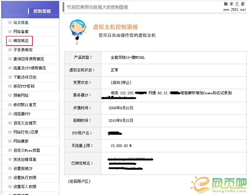 首先登陸主機的管理頁面,進入虛擬主機控制面板,可以看到空間的所有信息: