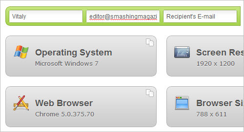 假如你想讓你的用戶提供他/她所使用的浏覽器環境,比如 Flash 版本,操作系統,屏幕分辨率,Cookie,JavaScript 狀態等,可以讓他/她訪問一下這個站點,這個站點或自動將這些內容探測出來,並允許用戶現場通過郵件將報告發送給你。