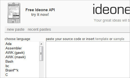 一個在線 IDE 和調試工具,支持多達40種語言,包括 C++, Java, JavaScript, Perl, PHP, Python and Ruby,同類產品:PHP Anywhere 以及 CodeRun 。