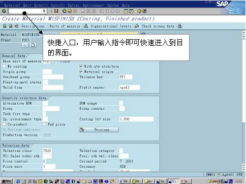 SAP上的快速入口,為較熟的用戶提供便捷的入口,因為SAP是一個很復雜的企業管理軟件,有財務管理、人事管理、生產管理等等,覆蓋企業中的各行業,但通常單個用戶一般只用其中的一個,比如你是會計師,那麼你通常只用到財務管理模塊,這時候你只是想打開軟件就進入財務模塊,快捷入口無疑解除你使用導航樹的痛苦。