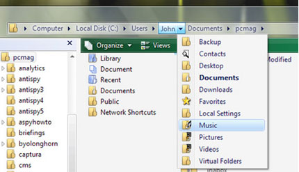 導航的組織形式很多很多,在軟件裡,vista系統的路徑條曾給我眼前一亮的感覺,我們通常都被系統傳統的做法束縛了,vista系統突破了這個的思維,也很值得我們借鑒,不但在組織形式上,在思維上也值得我們借鑒。下圖是我截取的一個例子。