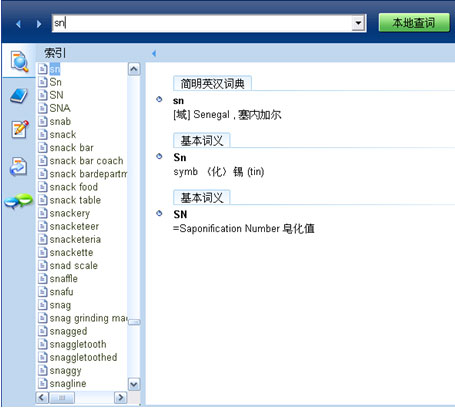 詞典的導航,我們通常都是通過搜索,然後根據搜索來查找某單詞的釋意,但當我們只記得前一、二字母,完全不記得單詞的時候,查找是很麻煩的事情,無論是翻書本字典,還是電子字典。這樣如此繁多的檢索型導航,看下面金山詞霸的表現形式。