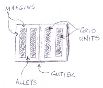 柵格與內邊距兩頁或兩版展開時,內部的邊距就稱為"gutter"(內邊距),即中縫兩邊的邊距。在某些排版軟件中,兩個文本欄之間的間隙也叫做"gutter"。