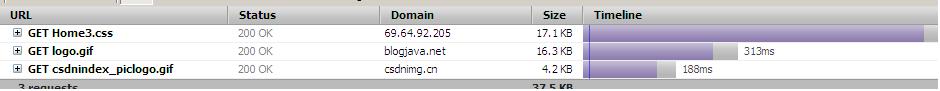 阻塞下載圖:下圖是訪問blogjava首頁的時間瀑布圖,可以看出來開始的2個image都是並行下載的,而後面的2個JS都是阻塞下載的(1個1個下載)。