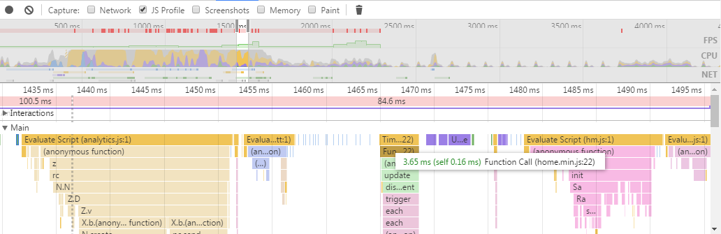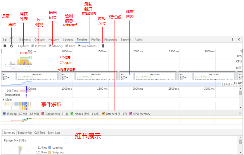 js函數執行的信息,主要展現在事件調用瀑布圖中