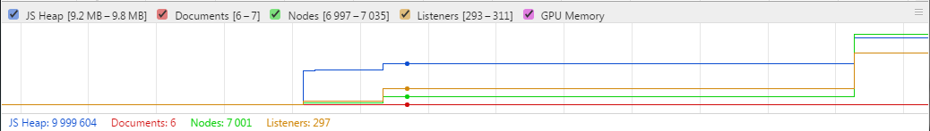 當打開狀態時,記錄在記錄過程中如js堆內存、Node節點數等數據的記憶線